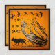 Vintage ghosts, crows, bats and cat Halloween party invites for kids, family and adults in black and orange colours. The spooky skeleton ghosts are holding a big pumpkin who looks very scared! There is a black cat beside them and crows / ravens and bats flying above them. Cool, creepy,old fashioned, antique art invitations for children's, families and adult parties. All of the black text is fully customizable / personalizable to suit your needs - lots of fonts to choose from. These original, unique, awesome, scary, personalized, custom Halloween celebration invitations are printed on both sides / have double sided printing.