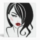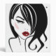 Lovely, retro girly theme in black and white. A beautiful woman face with red lips and curly hair. Fun, retro drawing.
