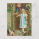 This post card has a vintage image from a German post card of a mother assisting her cute little girl in feeding chickens from their doorstep.