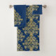 Add vintage elegance to the decor of your bathroom with this gold and blue damask towel set. This towel set would be a thoughtful housewarming, wedding, or another occasion gift