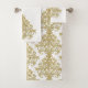 Add vintage elegance to the decor of your bathroom with this gold and white damask towel set. This towel set would be a thoughtful housewarming, wedding, or another occasion gift