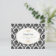 Vintage Gold Black & White Damask Wedding Thanks Postcard