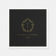 Vintage Gold Crest monogram, black wedding paper napkins. Vintage inspired Baroque Style Crest.