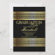A dramatic design with an ebony background and two ribbons of gold with a diamond pattern. Featured as a graduation invitation, it's suitable for almost any celebration.