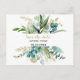This vintage gold & green eucalyptus save the date card is perfect for a simple wedding. The design features hand-painted watercolor green, gold, and blue leaves and flowers neatly arranged into bouquets and geometric elegant frames.