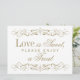 Direct guests to your dessert or favour table with this vintage gold scrollwork "Love Is Sweet, Please Enjoy a Treat" sign. Ornate scroll filigree borders frame the charming text in elegant typography, creating a refined finishing touch for your sweets station. The classic gold on white design coordinates seamlessly with the full scrollwork stationery suite. All text is fully customizable.