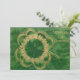 Colourful and festive traditional St. Patrick's Day greeting featuring gold shamrocks and greeting on green floral background. Back features editable text fields and optional shamrock graphic.