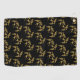 Elegant design features gold vintage swallows bird illustrations as repeating pattern on black background