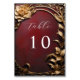 Elevate your wedding reception with these Vintage-style Wedding Table Numbers from the 'Theatrical Reverie Collection.' Each table number is adorned with captivating rustic backgrounds—blue, royal purple, green, rust brown, charcoal black, and theatre red—featuring a rose flower and foliage in a 3D golden metallic effect. Embrace the vintage charm as these table numbers frame each centerpiece.