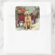 Vintage Golden Retriever Christmas Carriage Illust Square Sticker