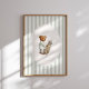 This Vintage Golf Teddy Bear Wall Art features a sweet teddy bear standing proudly beside a golf bag, illustrated in a timeless, hand-painted style.