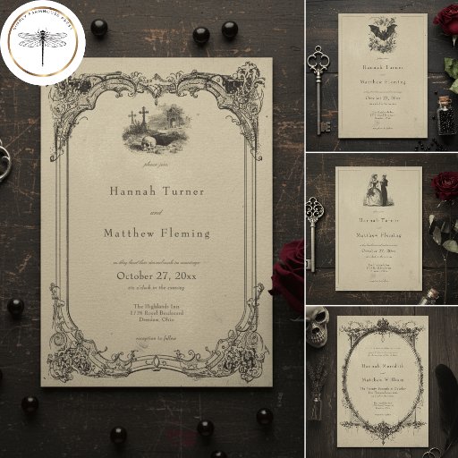 Announce your special day with this elegant vintage gothic ornate oval frame design. This unique aged parchment style wedding invite is perfect for couples seeking a sophisticated, classic, or dark aesthetic for their memorable celebration. Fully customizable, it sets a dramatic, vintage aesthetic and romantic tone for your ceremony. Created by Simply Farmhouse Press.