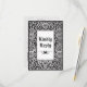 This unique wedding response card design features a black and white antique Roycroft title page frame on the front. The back has a white watered taffeta textured background with classic styled writing. Created by Simply Farmhouse Press, it's part of the Vintage Gothic Black & White Roycroft Frame Wedding suite of cards.