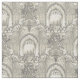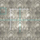 This is a digitally enhanced print derived from an antique 1850 block printed pattern of a single drop-repeating motif of three bays of a late Gothic building with vaulting and portions of cresting. Landscape scene with foliage and flowers seen through window.