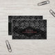 Grungy vintage black and grey modern uptake on a medieval look business card with red text on the front. These would be perfect for a professional that is looking for a business card that is a little bit edgy, a dj, web designer, graphics designer, tattoo artist, musicians or someone in the entertainment business.
