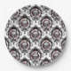 Whimsical gothic halloween burgundy floral skulls paper plates.