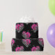 Whimsical vintage gothic Halloween wrapping paper featuring hot-pink roses adorning skeleton hands.