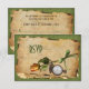This bygone era inspired vintage RSVP card has PRINTED embellishments of a dried yellow rose, a small green satin bow, and an old pocket watch sitting on a stack of old love letters with faded calligraphy writing and torn and burnt edges on them on a distressed LOOK crackled olive green paint background that matches the wedding invitation shown below. It is shown here on basic paper, but would also look nice on the linen, felt, or metallic in champagne or ice. Some of the papers will alter the colour of the design, so use caution if you choose the felt paper, as it may yellow the look more than you want. I would NOT use the gold or silver metallic papers. ALSO, if you re-size the invitation, or if you change fonts, or the size of the font, some of the design and/or text may get cut-off. Everything will print as you see it on your monitor. I will not see your invitation, and Zazzle will NOT correct anything (typos, mis-alignment etc.). The text and paper is all customizable. If you need help with this card, please email me BEFORE you place your order. If you require any other matching items, please email your request to niteowlstudio@gmail.com.