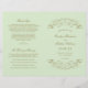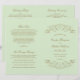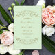Lush green antique flourishes lend a garden-inspired elegance to this vintage ceremony program. The front cover features ornate scrollwork framing your names and wedding date against a rich green background, with a coordinating vintage backing. Inside pages are fully customizable to include your bridal party, ceremony order, and a heartfelt thank you note. Programs are printed on text-weight paper and arrive flat, requiring a simple centre fold.