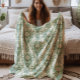 Vintage green botanical pattern fleece blanket