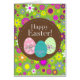 Perfect for Easter with Happy Easter egg logo and with cute design of vintage style floral daisy Spring flowers of yellow and purple on a grass green background. This floral pattern is cute, stylish and is a perfect reminder of Springtime.