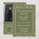 🎓Celebrate your achievements with our Vintage Green Honeysuckle Floral Invitation! This sophisticated design features delicate cream-coloured honeysuckle flowers and lush green leaves in a swirling, vine-like pattern, set against a muted green background. Add 2 photos and share the joy with all your favourite people. Ideal for anyone who loves floral designs with a touch of old-world elegance.