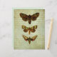 3 green-brown vintage moths on an aged effect striped background. These sheets make unique writing paper and are wonderful for creating nature journals, scrapbooks, collages, or for any of your vintage themed crafting.