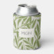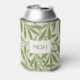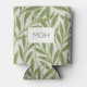 Vintage Green Willow Leaves Monogram Can Cooler