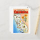 This is a reproduction of a vintage travel postcard showing a map of California.