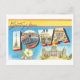 This postcard is a reproduction of a vintage large letter "greetings from" postcard from Iowa.