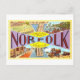This postcard is a reproduction of a vintage large letter "greetings from" postcard from Norfolk, Virginia.