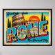 Celebrate the Eternal City with this vintage-style illustration inspired by 1940s Curt Teich linen postcards. “ROME” appears in bold uppercase letters filled with miniature images of Roman landmarks. Behind the text, a colourful retro view of the Colosseum and cypress trees evokes timeless Roman charm. Perfect for travel lovers and Italy enthusiasts.