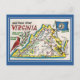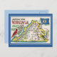 Vintage greetings Virginia map state flower, bird Postcard