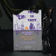 A Halloween Invitation with vintage elements with dark purple, light and mid grey and light orange themes. With bats, skulls, spiders, candles and pumkins.