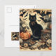 Step into a world of antique feline elegance with this Halloween postcard. Featuring watercolor black cat ephemera inspired by Victorian art and spooky season nostalgia, this holiday card has a vintage Halloween black cat with gothic artwork accents for an antique look and feel. It can be personalized with a greeting on the back.