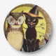vintage Halloween black cat owl party Paper Plate