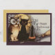 Vintage Halloween Black Cat & Owl Witch Hat Moon