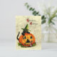 Vintage Wishes from a precious little reminder of Halloween past. This is a adorable image of a black cat hiding behind a jack-o-lantern while a mouse is pushing a door bell on the jack-o-lantern. This is a must have for the holidays.