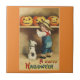 Cute, vintage picture of a little boy and his dog looking at some pumpkins, with message "A Happy Halloween", is featured on this ceramic tile. Use as a coaster, trivet or for a decoration for Halloween. Makes a great gift for Fall, Halloween, birthdays or the office!