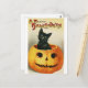 Vintage Halloween Card | Black Cat in Pumpkin .