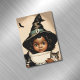 Vintage Halloween cutie in large pointed hat with two kittens . Great magnetic card for anyone who loves vintage images, witches, cats.No5 version features a cute African American child .