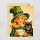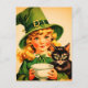 A vintage Halloween cutie in a large witch hat with a cute kitten This is great for anyone who loves vintage images of witches and cats. The No. 7 version comes with a green witch outfit. Ideal for little Irish witches.