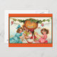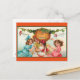 Adorable, vintage picture of little girls dancing around a Halloween pumpkin with message "Halloween Greetings" is featured on this postcard. Send to family and friends to keep in touch this Halloween!
