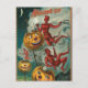 Vintage Halloween devils flying around jack-o-lanters. Vintage Wishes from a precious little reminder of Halloween past. Click customize and add your own text, create a party invitation or birthday greeting.