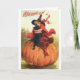 Vintage / Retro Halloween greeting card -- witch with black cat on pumpkin!