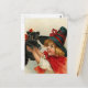 Vintage Halloween Little Witch Holding Black Cat Postcard