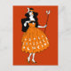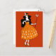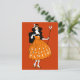An adorable vintage, Halloween illustration of a moonlight fairy, with black hair, wearing an orange dress. She is wearing a moon crown, and holding a star-moon wand. Very pretty, and colourful. Great for anyone who admire Halloween themes, vintage art, and fairies.