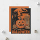 Vintage Halloween Pumpkin Black Cat Holiday Card