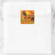 Square stickers with a vintage traditional Halloween scene of cats, bats, pumpkins, haunted house.