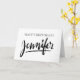 Vintage handwritten name Jennifer Happy Birthday cards. Personalized greeting cards with name Jennifer. Custom cards for women and girls. Elegant hand lettered script typography design. Pretty black and white modern calligraphy handwriting artwork. Unique gift idea for mom, mother, sister, daughter, friend, wife, aunt, grandma, co worker, cousin etc. Beautiful template design.